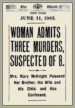 It’s been said that poison is a woman’s weapon. And while statistics prove that femme fatales typically use the same instruments as their male counterparts to exact their crimes (guns and knives being at the top of that list), there have been a number of female serial killers over the years that have used poison to kill. In England in the late 1800s, Mary Ann Cotton is believed to have killed upwards of 20 people with arsenic, including 11 of her own children. In the south, Nannie Doss killed close to a dozen people from the 1920s through the 1950s using rat poison. And in Michigan, there was Mary McKnight, who used strychnine as her weapon of choice to kill her entire family.